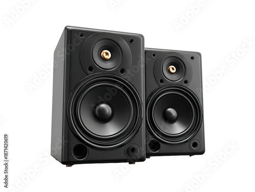 © ANZ studio, Fototapeta premium Two black stereo speakers, close-up