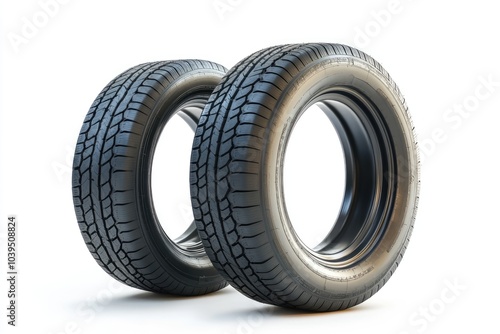 © twilight mist, Obraz premium Two Black Tires with Detailed Tread Patterns on White Background