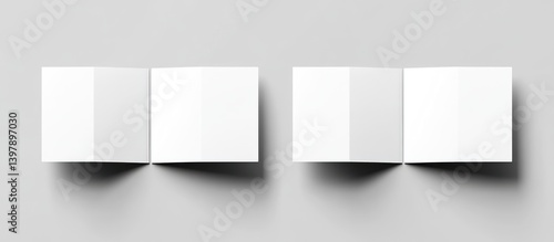 © Miftahul, Obraz premium Two Blank White Brochures Presented Flat and Open on Surface