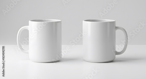 © Baks, Fototapeta premium Two Blank White Mugs, Minimalist Studio Shot