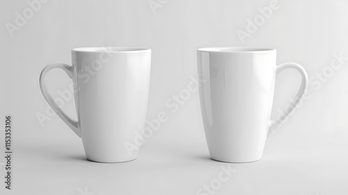 Obraz premium Two Blank White Mugs on a White Background, Perfect for Mockups and Branding Designs