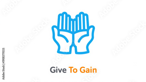 Fototapeta premium Two blue hands raised together on white background with give to gain text human connection support helping hands community engagement teamwork collaboration unity positivity charity initiative
