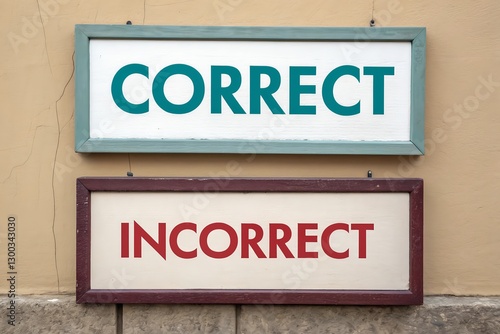 Obraz premium Two boards: one with a bold, vibrant correct word and the other with a...