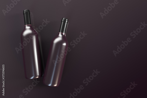 Naklejka premium Two bottles of wine are on the table. View from above. Copy space.