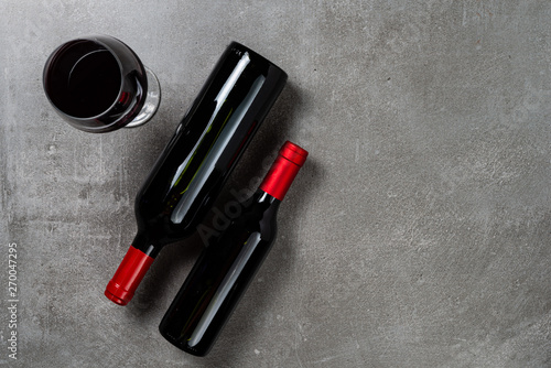 © Julio Ricco, Naklejka premium Two bottles of wine glass on concrete background. Copy Space.