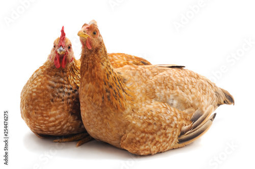© ANASTASIIA, Fototapeta premium Two brown chickens.