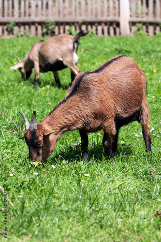 © Miroslav Beneda, Fototapeta premium two brown goat pasture on spring