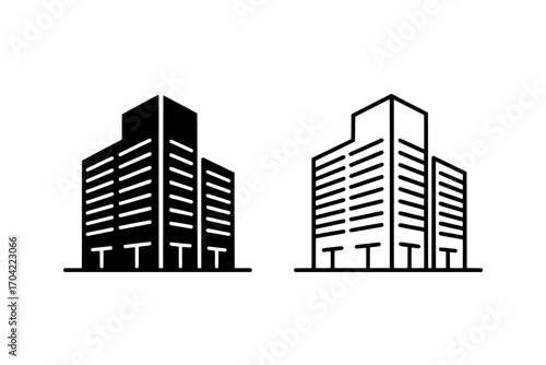 Fototapeta premium Two Building Icons: Solid Black vs. Outline Style