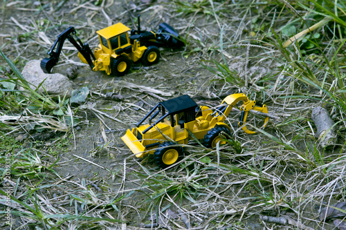 © chong, Fototapeta premium Two bulldozers were put in for the road construction.