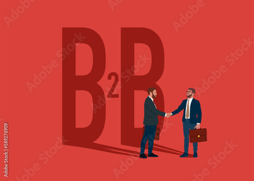© Vadym, Fototapeta premium Two business men shaking hands. Block B2B Business-to-Business, Networking, Technology, Marketing and Internet. Modern vector illustration in flat style