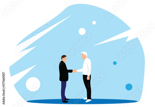 Fototapeta premium Two Business People Shaking Hands. White collar office workers and company leadership CEO concept vector art