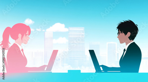© Vertigo Images, Obraz premium Two business professionals work on their laptops.