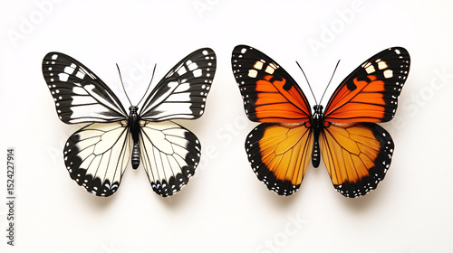 Fototapeta premium Two Butterflies Black White with Orange Contrast.