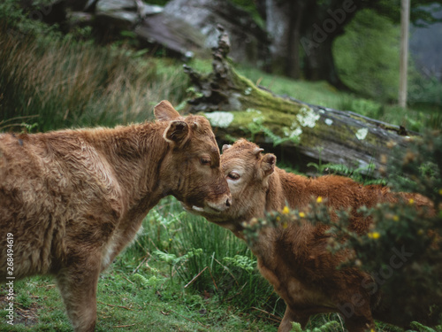 © Eneko Aldaz, Fototapeta premium Two calf bulls taking care of each other