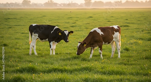 © Ceper, Fototapeta premium Two calves grazing in meadow