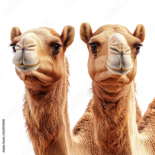 © doly, Obraz premium two camel heads isolated on transparent background.