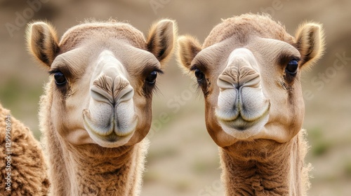 Obraz premium Two camels facing forward, close-up.