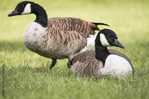 © Shorif Miah, Obraz premium Two Canada Geese Standing on Grass