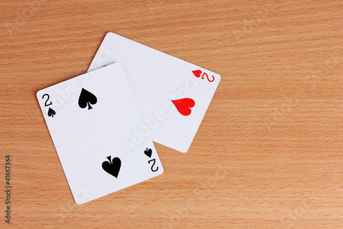Obraz premium Two cards on wooden background