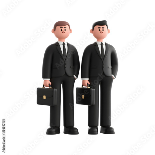 © 3D PNG Element, Obraz premium Two cartoon businessmen in black suits holding briefcases isolated on transparent background