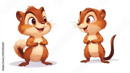 © 11faqihtanjung, Fototapeta premium Two cartoon chipmunks facing each other
