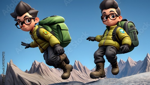 © vixer.std, Fototapeta premium Two Cartoon Hikers in the Mountains