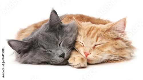 © artzone, Obraz premium Two Cats Sleeping Peacefully Together on White Background