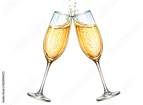 © dipu, Fototapeta premium Two champagne flutes clinking together isolated on transparent background