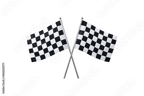 © Anasaiimages, Fototapeta premium Two checkered black and white race flags fluttering in the wind