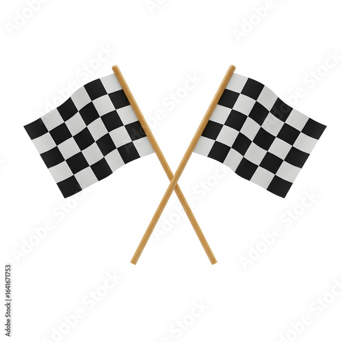 Fototapeta premium Two checkered flags crossed against a dark backdrop signaling finish line