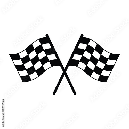 © z, Naklejka premium Two checkered flags crossed, symbolizing victory or the start of a race.