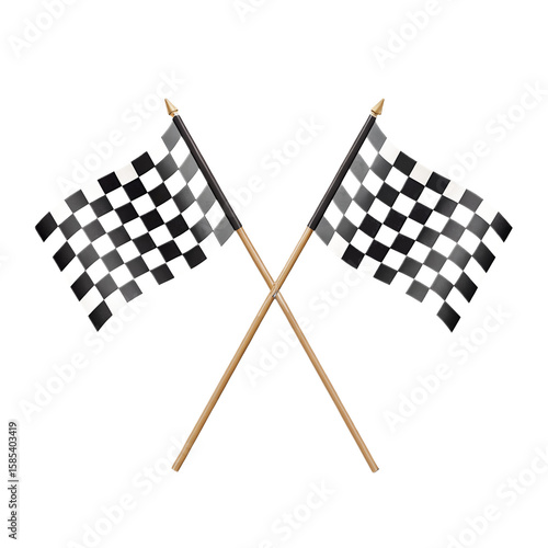 Fototapeta premium Two checkered racing flags are crossed, symbolizing victory and the thrill of motorsports competition isolated on transparent background