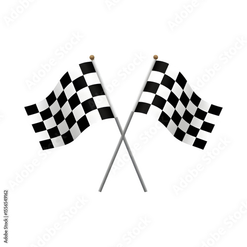 © 3D PNG Element, Fototapeta premium Two checkered racing flags crossed on poles isolated on transparent background