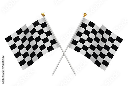 © MDABULKALAM, Fototapeta premium Two checkered racing flags crossed on white background