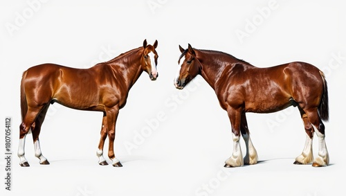 © Focus Gem, Obraz premium Two Chestnut Horses Facing Each Other - Studio Portrait