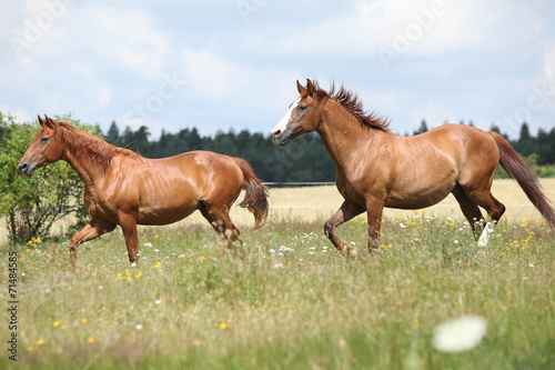 © Zuzana Tillerova, Fototapeta premium Two chestnut horses running together