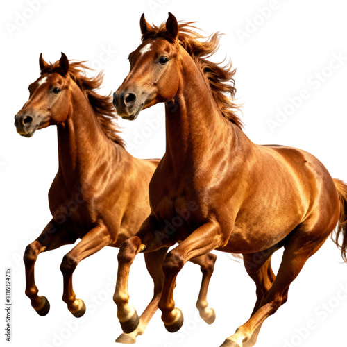 © Creative Vector, Naklejka premium Two chestnut horses running together isolated on transparent background