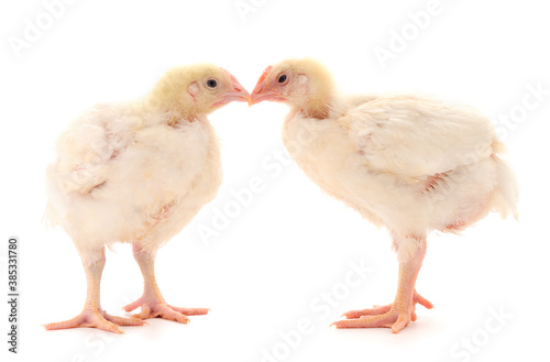 © Galyna, Fototapeta premium Two chicken or young broiler chickens.