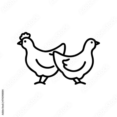 Fototapeta premium Two chickens standing side by side in simple outline style