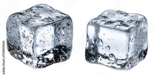 Obraz premium Two clear ice cubes, isolated on white