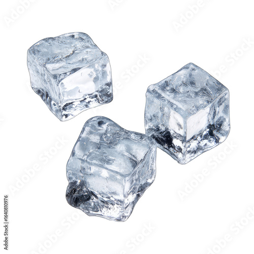 © 3nautika, Obraz premium Two clear ice cubes, slightly overlapping, in mid-air