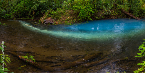 © Pavel, Obraz premium Two clear rivers with different acidity mix and create the river with turquoise water. Rio Celeste, Costa Rica