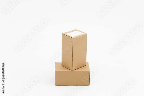 Obraz premium Two closed cardboard boxes on a white background