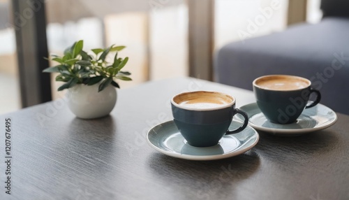 Obraz premium Two coffee cups in modern cafe setting