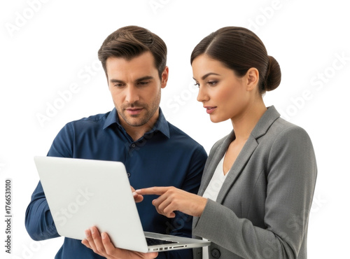 © Saim Art, Obraz premium Two colleagues collaborating on a laptop transparent background cutout png