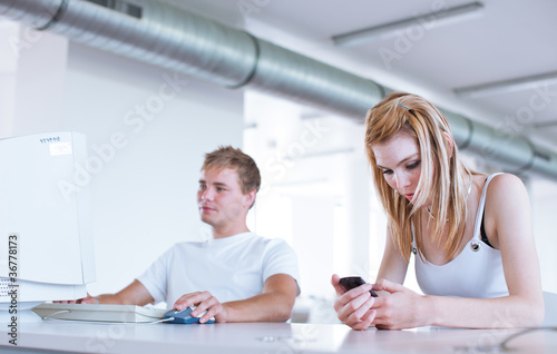 © lightpoet, Fototapeta premium two college students having fun studying together