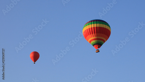 © u.perreten, Fototapeta premium Two colorful balloons over Vang Vieng, Laos.