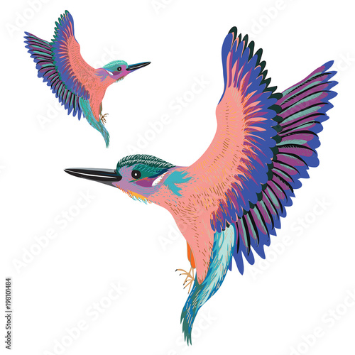 Obraz premium Two colorful birds flying. Vector illustration of two birds on white background
