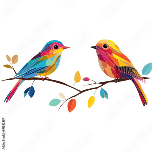 © Jari.art, Fototapeta premium Two colorful birds on a branch