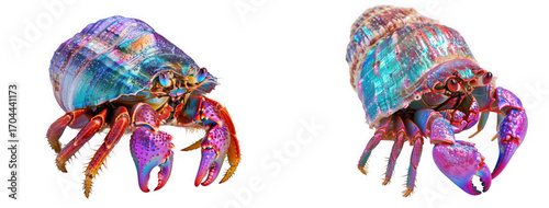 © Hirak, Fototapeta premium Two colorful hermit crabs isolated on transparent background, showcasing their vibrant shells and intricate details, creating a captivating image of marine life